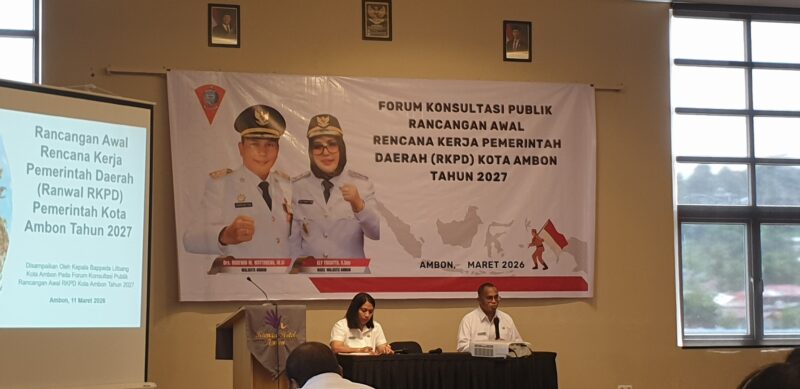 Perencanaan tersebut diawali dengan Forum Konsultasi Publik Rancangan Awal Rencana Kerja Pemerintah Daerah (RKPD) Kota Ambon Tahun 2027, yang berlangsung di Hotel Kamari, Rabu (11/3/2026), yang dibuka oleh Wakil Wali Kota Ambon, Ely Toisutta.