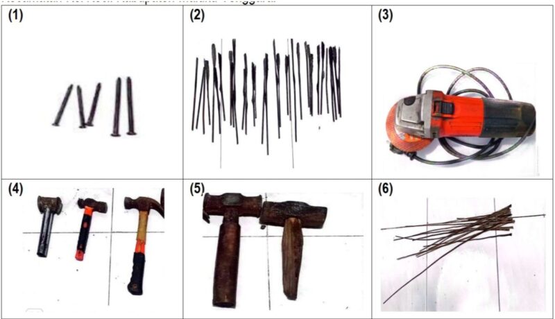 Tersangka yang diamankan ialah A.J.R alias Jordi dan A.P.O alias Paul. Barang bukti yang disita adalah puluhan anak panah wayer, paku, martil, serta mesin gurinda.