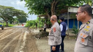 BULA, HEADLINETIMUR.COM – Di bawah arahan Kapolres Seram Bagian Timur (SBT), AKBP Alhajat, S.I.K., didampingi Wakapolres Kompol Johanis Titus, personel Polres SBT turun langsung melakukan perbaikan jalan di Jl. Lintas Seram, tepatnya di depan Bengkel Lakudo, Kota Bula.